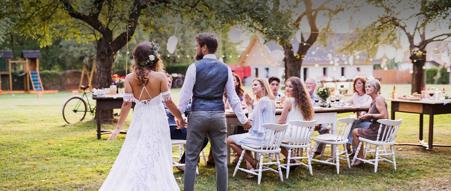 It’s important to marry the size of your guest list to the footprint of your outdoor space. You need to ensure enough square footage per person that they have room to roam and be comfortable, especially during a summer wedding where you could be battling heat and humidity. If you’re setting up a tent, ensure it is large enough to accommodate both guests, your band or DJ and the staff serving your event. Also, think about whether a buffet or a more traditional sit-down dinner makes sense given the footprint of your space and the number of guests you are hosting.